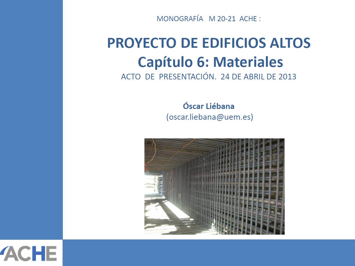 Presentación del Capítulo 6 de Materiales de la Monografía PROYECTO DE EDIFICIOS ALTOS (M20-21 de ache):